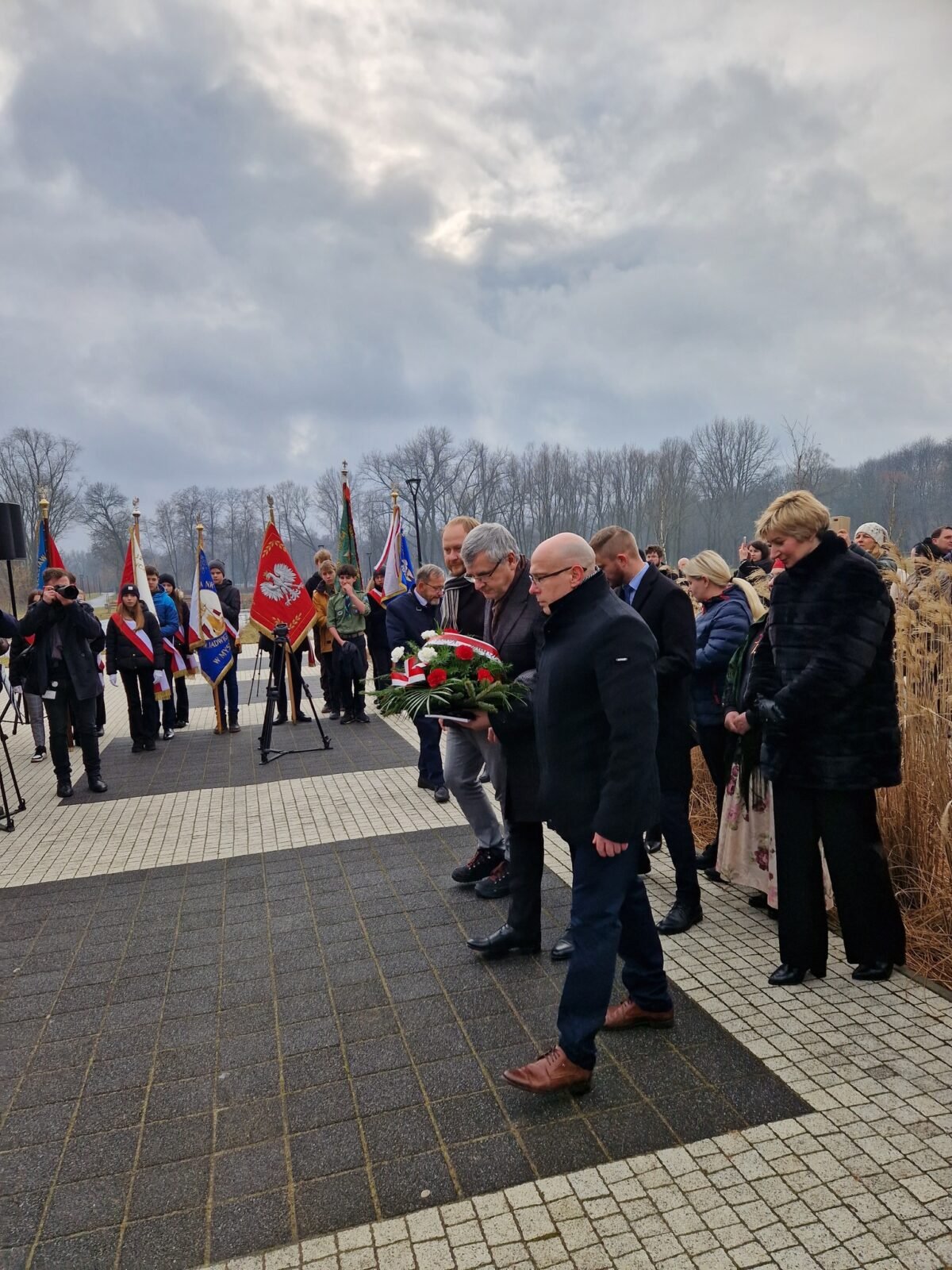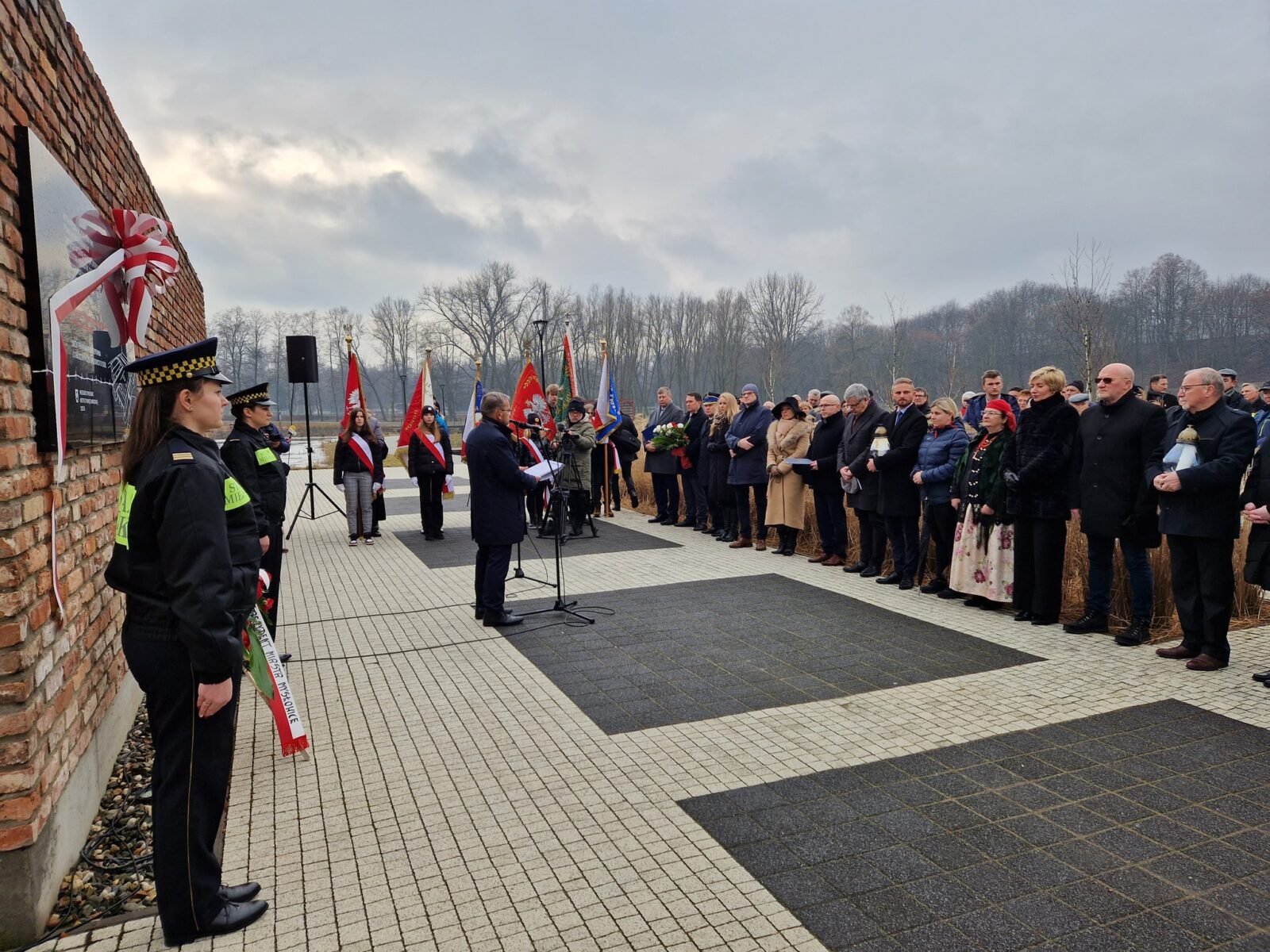 bryg. Rafał Jureczko – Dyrektor Centralnego Muzeum Pożarnictwa oraz Dariusz Falecki – naczelnik Wydziału Naukowo-Oświatowego uczestniczyli 13 lutego br. w uroczystym odsłonięciu tablicy upamiętniającej działalność niemieckiego zastępczego więzienia policyjnego „Rosengarten“ i powojennego obozu pracy.