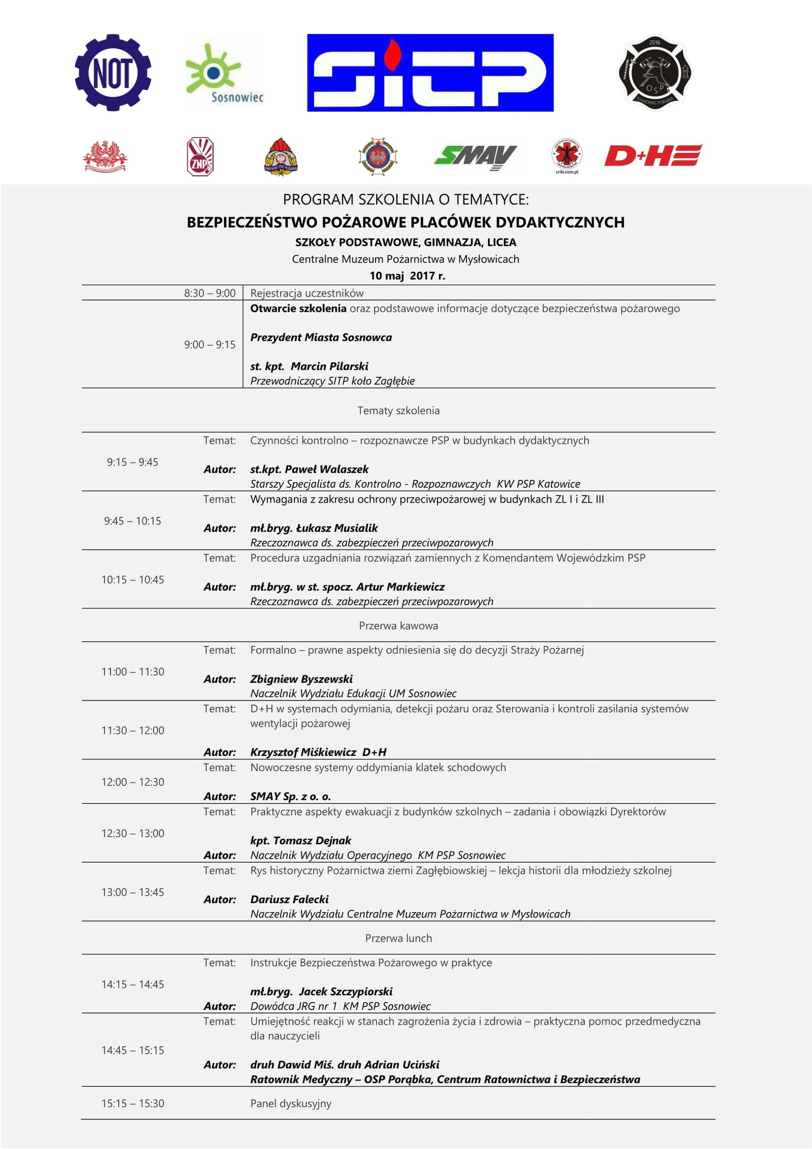 Harmonogram szkolenia „Bezpieczeństwo Pożarowe w Placówkach Dydaktycznych”