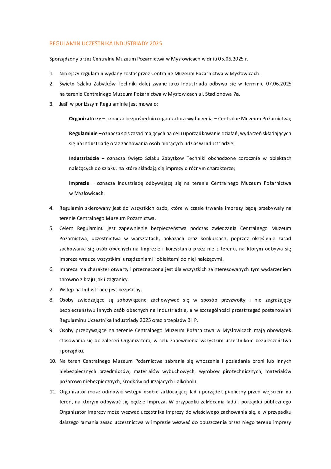 Regulamin Industriady