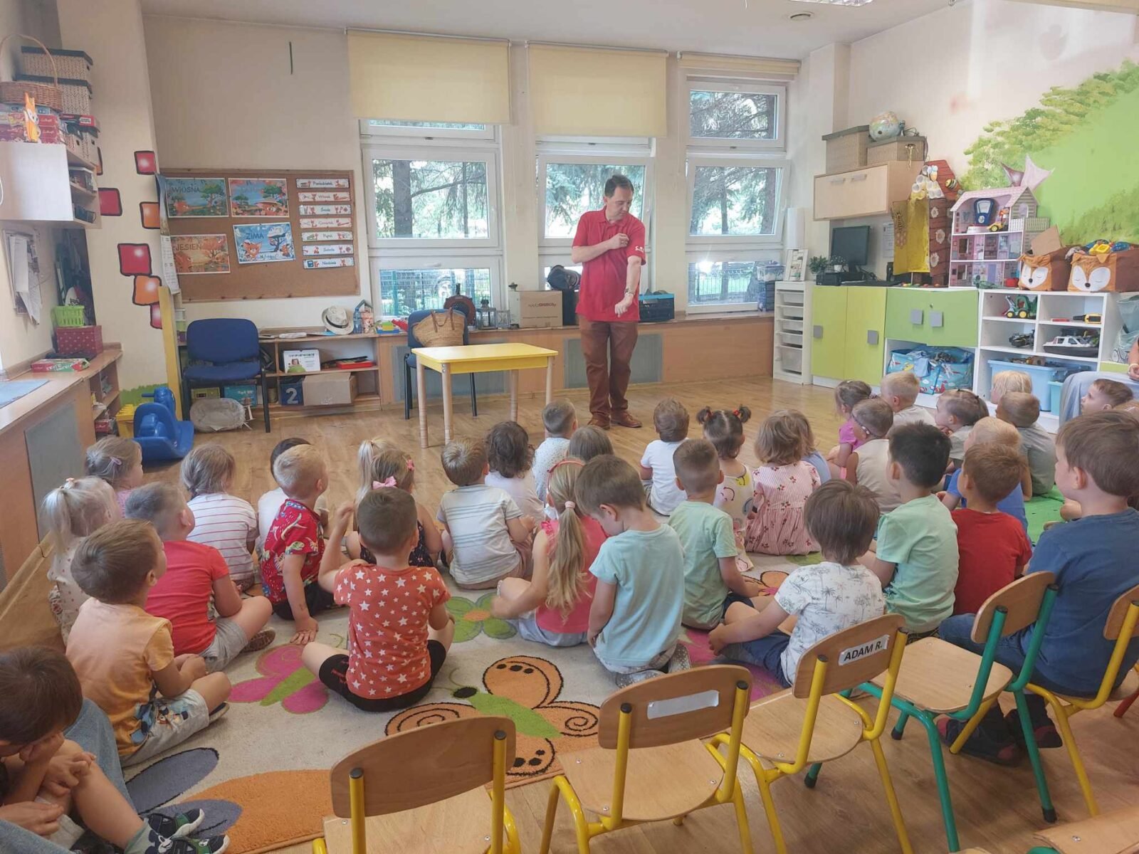 W zajęciach uczestniczyło 6 grup przedszkolnych. Tematem lekcji był historyczny sprzęt strażacki. Dzieci dowiedziały się jak wyglądały bojowe hełmy strażackie, jak działał sprzęt alarmowy, oświetleniowy oraz inne części uzbrojenia osobistego. Walorem lekcji była możliwość przymierzenia munduru strażackiego i wypróbowania sprzętów w praktyce. Zajęcia przeprowadził Dariusz Falecki z Wydziału Naukowo-Oświatowego.